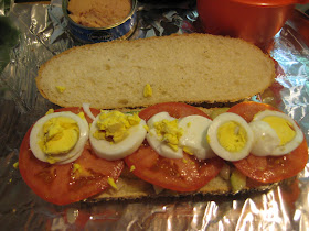 Next time, oh and there will be a next time for Pan Bagnat in our house, we will use a more substantial bread than the hoagie roll that we used that just didn't stand up to the smooshing. But there is no denying that the flavor was amazing! I can't wait to try this at the height of our local tomato and cucumber season!